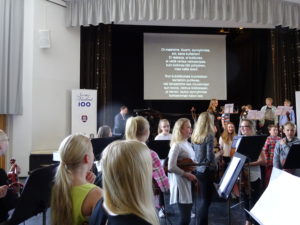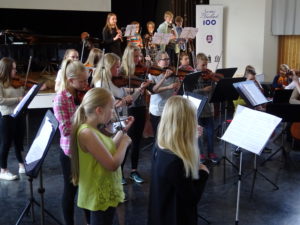 Kukan päivän konsertti ilahdutti taas munkkiniemeläisiä perjantaina 11.5. Vaikka tuuli oli ulkona kylmä, aurinko paistoi sisään lämpimästi Munkkiniemen yhteiskoulun, Munkkiniemen ja -vuoren ala-asteiden, Helsingin ranskalais–suomalaisen koulun ja Länsi-Helsingin musiikkiopiston kokoontuessa musisoimaan Suomi 100 –teeman alla Munkkiniemen yhteiskoulun juhlasaliin. Konsertissa oli yleisönä myös päivätoimintakeskus Sinilinnun musiikinystäviä.