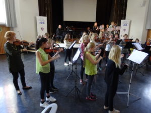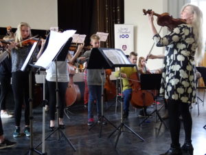 Länsi-Helsingin musiikkiopiston jousiorkesteri esitti Aaltojen laulun ja reippaan Hokkas-rallin: