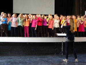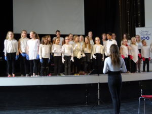 Munkkiniemen ja -vuoren ala-asteiden yhdistetty kuoro oli Euroviisu-tunnelmissa. Iloista Tipitiitä ja Hengailua Kultaisissa kengissä oli ilo kuunnella: