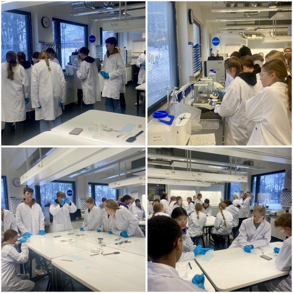 Munkka Goes Green Erasmus+ -projektin oppilaat Ioncell-tekstiilikuituun tutustumassa