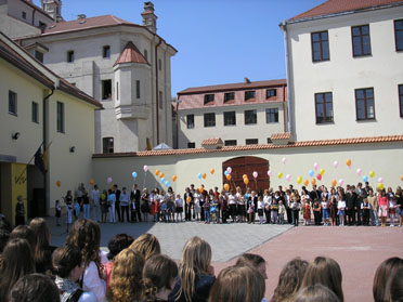 Times had been hard- World War I was going on. Lithuania was occupied by Germans, the people were impoverished. However, the enthusiasts who founded this school were optimistically inclined. Even though there were only 47 students there in the beginning, later their number was growing very fast. Young people from the city of Vilnius and the region began joining the gimnasium. This tradition is alive to this day -- a number of students come from regions around Vilnius. This difficult time gave birth to the gimnasium traditions, priorities and students' self-_expression. One of the first traits of the gimnasium was the community coming together. The most important issues were discussed by teachers, students' parents and gimnasium students themselves. Today, the community involvement again became a priority.