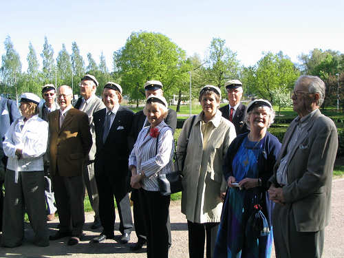 Virallisen riemuluokkakokouksen saimme pitää vanhan, rakkaan koulumme pienemmässä auditori-ossa. Katsoimme laaja-kankaalta CD-levylle poltettuja kuvia kansa-kouluvuosistamme alkaen. Monet hauskat muistot pullahtivat esiin ja juttu luisti. Muutamat eivät tosin aina tunnista-neet kuvista itseään, mutta luokkatoverit palauttivat nämä muisti-häiriöiset (?) pian ruotuun..! Lähes 3 tuntia kului kuin siivillä … ja sitten lähdimme kä-vellen sankarihaudoille. |